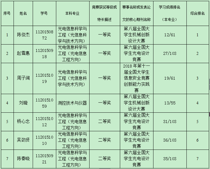 1.学术特长推荐免试生名额为:7人;