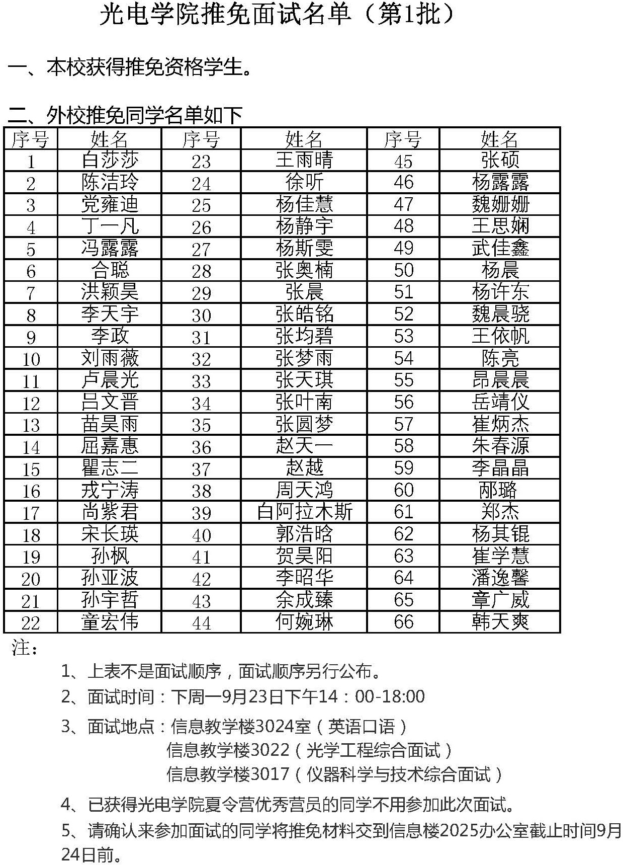 2020级det365登录网站主页推免面试名单-第一批