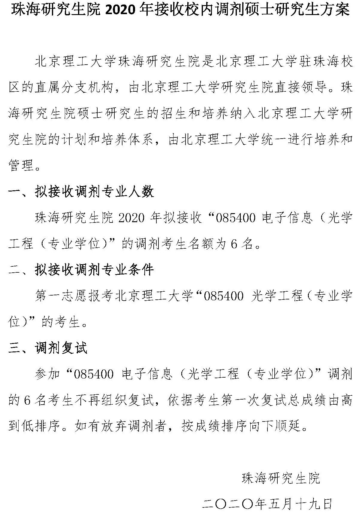 珠海研究生院2020年接收校内调剂硕士研究生方案