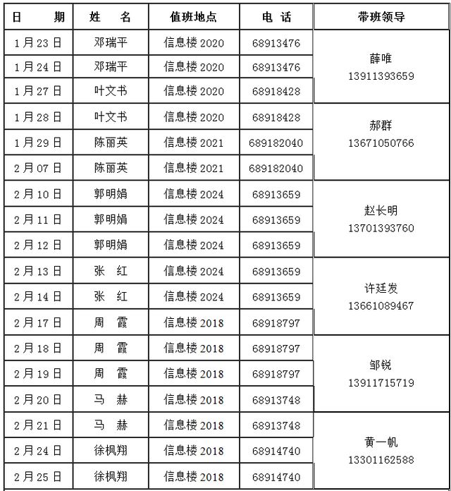 det365登录网站主页2014年寒假假期值班表(1月23日―2月25日)