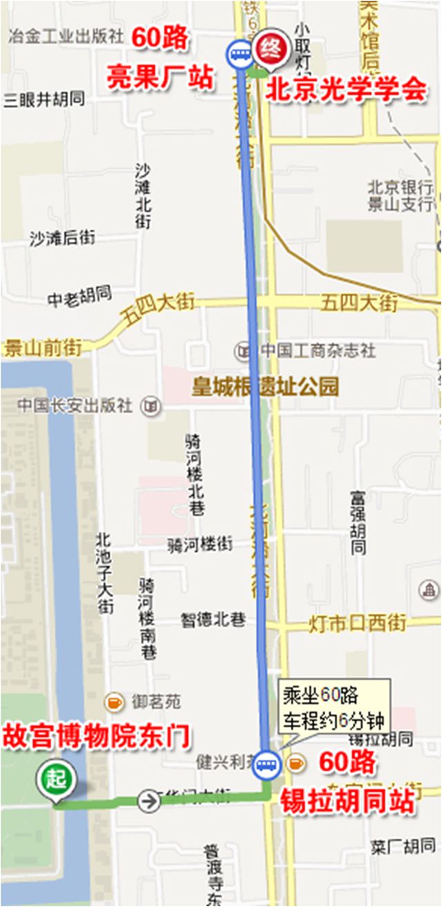2). 故宫东门至北京光学学会路线图
