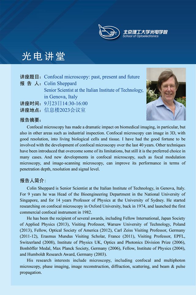 国际首台商用共焦显微镜的构建者及其理论体系的建立者Sheppard教授来我院进行学术讲座