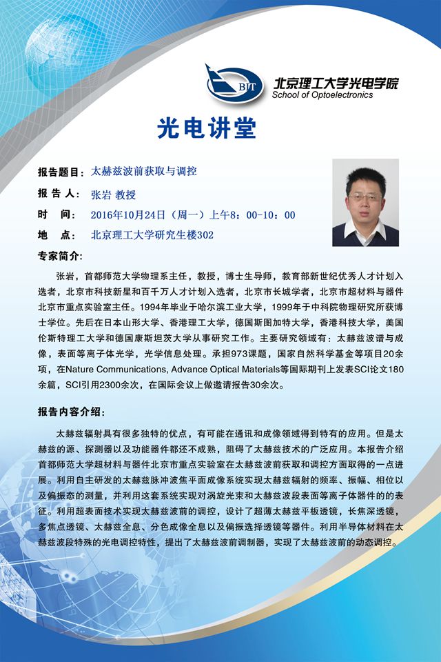 【光电讲堂】10月24日讲座预告