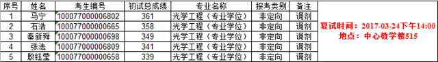 通知公告 通知公告 首页» 通知公告» 学院通知 det365登录网站主页2017年研究生招生调剂复试名单及安排 发布日期:2017-03-23 阅读次数: 申请调剂det365登录网站主页前沿交叉科学研究院“光学工程(专业学位)”的考生复试名单及复试安排详见下表。 分享到: