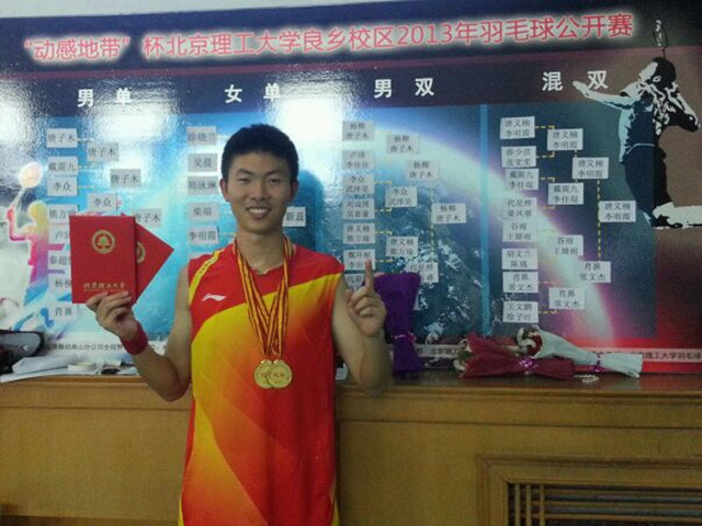 到了本部,离开了寂静的良乡,来到了繁华的市区,这里机会与挑战并存。来到这里,他觉得首先感到的就是压力。原来轻松的生活已经过去,这里,每个人都要直面自己未来的选择,保研,考研,出国,找工作,所有的这些都需要每个人去勇敢迎接。大三期间,他在赛场上继续拼搏,回终于拿到了全校羽毛球的亚军,进一步确立了自己的地位。作为学校篮球、羽毛球的双校队队员,肩上的责任也是越来越多。他在校党课的学习也顺利毕业,现在成为了一名预备党员,即将入党的他也更加坚定了自己的决心,为了共产主义事业而不懈奋斗。